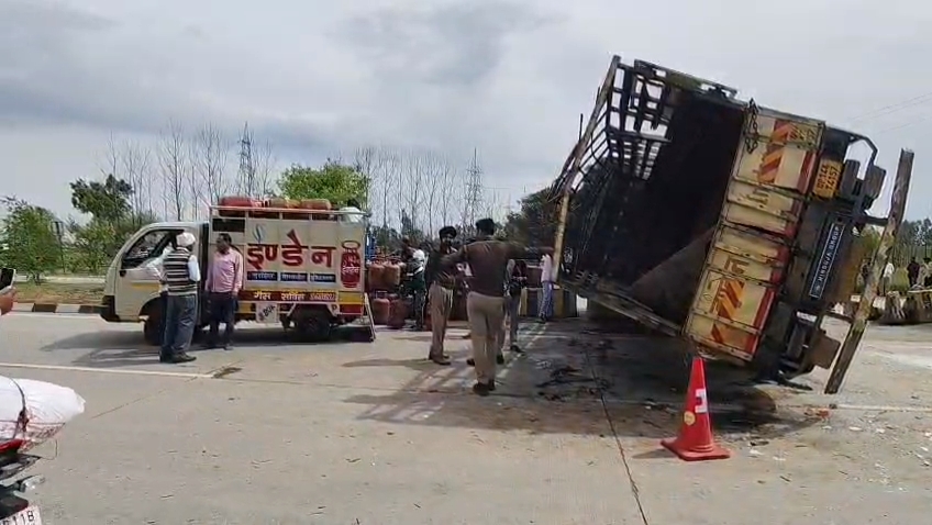 जिस कारण गैस सिलेंडर से भरा ट्रक अचानक की अनियंत्रित होकर पलट गया। ट्रक के पलटने के बाद ट्रक में भरे गैस सिलेंडर हाईवे पर पूरी तरह से बिखर गए। इस हादसे में रोडवेज की बस में सवार दो महिला यात्री और गैस सिलेंडर से भरे ट्रक का चालक घायल हो गए है। घटना के बाद मौके पर काफी भीड़ जमा हो गई। सूचना पर पहुंची पुलिस ने किसी तरह स्थिति को संभाला और घायलों को उपचार के लिए अस्पताल में भर्ती कराया गया है। जिसके बाद सभी गैस सिलेंडरों को इकट्ठा किया गया और अन्य वाहनों के जरिए गैस एजेंसी तक पहुंचाया गया है। पुलिस के द्वारा फिलहाल मामले की जांच की जा रही है।