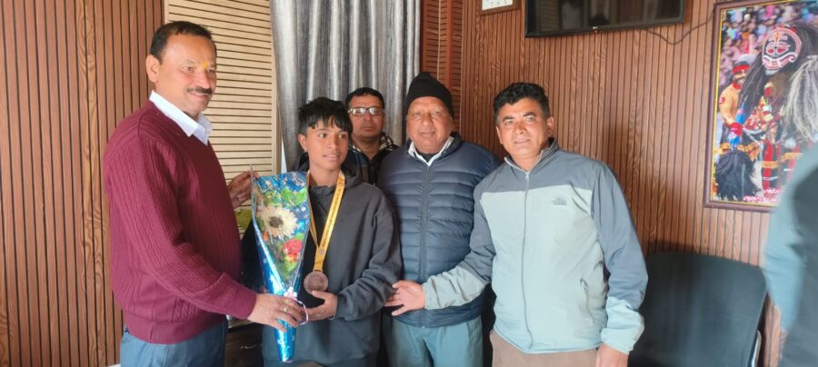 पिथौरागढ़ दर्जा मंत्री गणेश भंडारी के कैम्प कार्यालय पिथौरागढ़ में जिले की होनहार बेटी कोमल लोहिया पुत्री श्यामू राम माता सरिता देवी ग्राम नैनी सैनी का यूथ नेशनल के अन्तर्गत खेलों इंडिया 69 वा नेशनल बासिंग चेम्पियनशिप U-19 boys and girls 51 किलो वजन में कांस्य पदक जीतने पर बधाई शुभकामनाए दी।