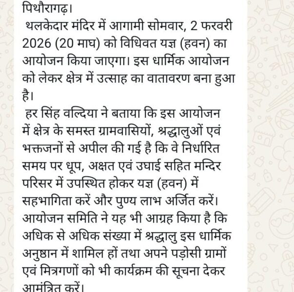 पिथौरागढ़, 17 अप्रैल 2026 — मुख्य चिकित्सा अधिकारी डॉ एस एस नबियाल...
