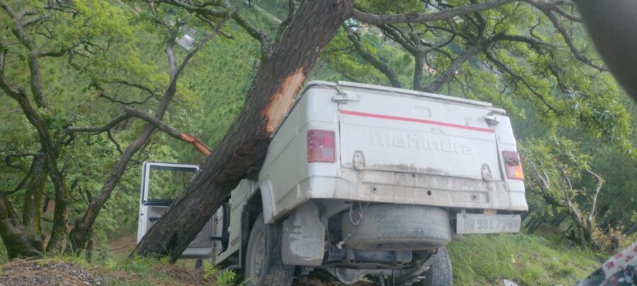 पिथौरागढ़ ब्यास घाटी से धारचूला को आ रही एक वाहन महेद्रा कैम्पर टीवी टावर के पास अनियंत्रित होकर सड़क किनारे जा गिरी जो पेड़ से अटक गयी, गणिमत रही की उक्त हादसे में कोई जनहानि नहीं हुई है,