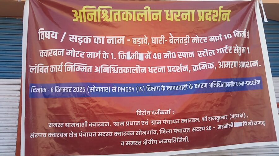 जिसमे ग्रामीण क्वार्पन के ग्रामीणों द्वारा बड़ाबे‑धारी‑बेलतड़ी सड़क पर पुल बनाने की मांग को लेकर अनिश्चितकालीन धरने पर पिछले 05 दिनों से डठे हुए है