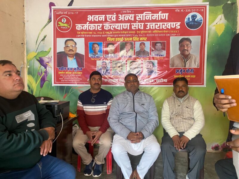 उत्तराखंड – भवन व अन्य संनिर्माण कर्मकार कल्याण संघ के कार्यालय कंजाबाग रोड निकट शिव मंदिर खटीमा उधम सिंह नगर में जिला कार्यालय का उद्घाटन किया गया,