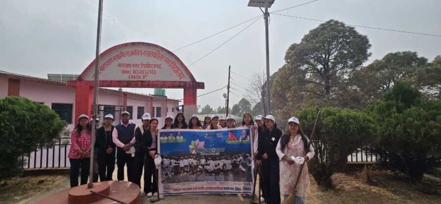 जल शक्ति मंत्रालय भारत सरकार के दिशा निर्देशों के क्रम में संत नारायण स्वामी राजकीय स्नातकोत्तर महाविद्यालय नारायण नगर डीडीहाट पिथौरागढ़ की नमामि गंगे इकाई द्वारा,”जल महोत्सव पखवाड़ा,” के अंतर्गत महाविद्यालय परिसर में स्वच्छता अभियान चलाया,