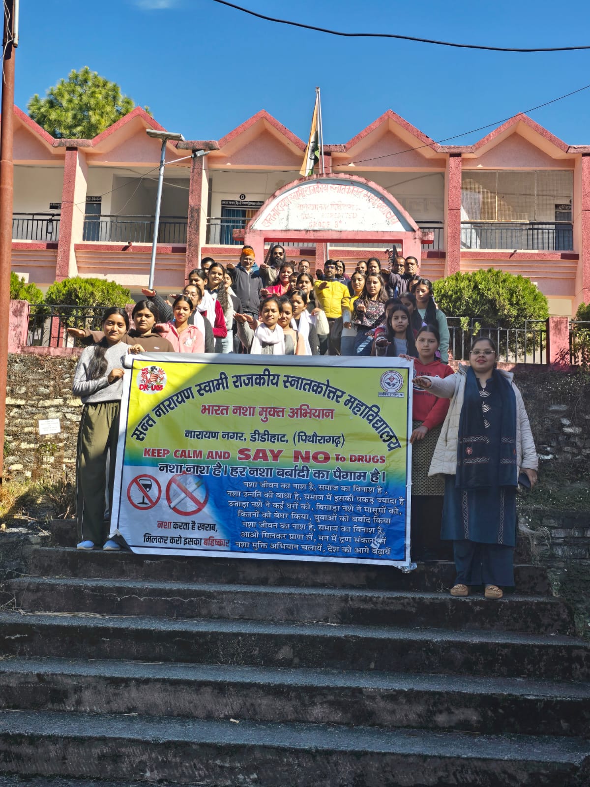 पिथौरागढ़ – संत नारायण स्वामी राजकीय स्नातकोत्तर महाविद्यालय, नारायण नगर में भारत नशा मुक्ति अभियान की पाँचवीं वर्षगांठ के अवसर पर ऑफलाइन शपथ ग्रहण कार्यक्रम एवं क्विज़ प्रतियोगिता का भव्य आयोजन किया गया।