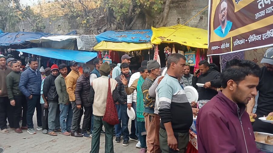 गांधी चौक में व्यापारी मंडल के अध्यक्ष तपन रावत की तरफ से यह माघ खिचड़ी आयोजन किया गया था।