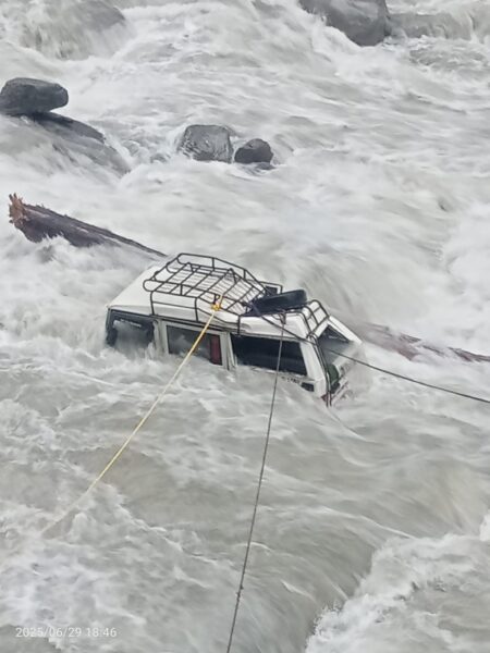 उक्त दुर्घटना के बाद ड्राइवर अपनी जान बचाकर छत में बैठ गया,वहीं सुचना मिलते ही जिलाधिकारी ने रेस्क्यू टीम को घटनास्थल के लिए रवाना करने के निर्देश दिए। घटना के बाद मौके पर पहुंची रेस्क्यू टीम ने चालक को सुरक्षित रेस्क्यू कर लिया गया है। बताया जाता है कि इसमें वाहन चालक राजू नाम का है जिसे रेस्क्यू टीम ने निकाल लिया है।