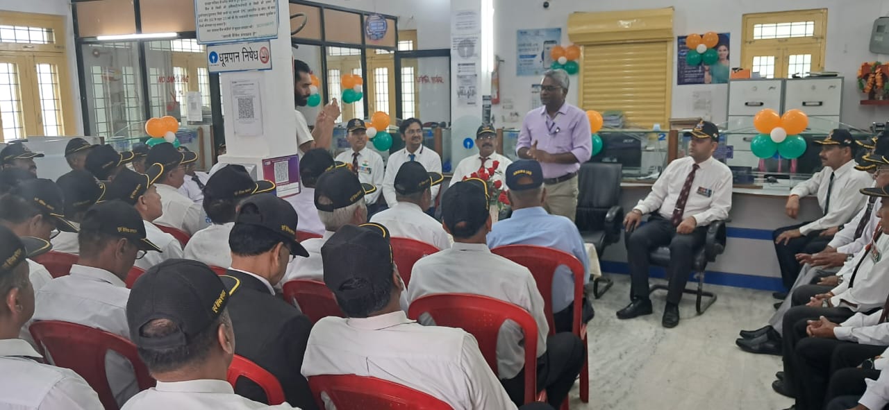 पूर्व सैनिक संगठन के उपाध्यक्ष मयूख भट्ट द्वारा एसबीआई स्टाफ को धन्यवाद प्रस्तुत करते हुए स्मृति चिन्ह प्रदान किया गया।