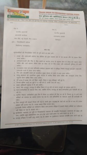 25 सूत्रीय मांगों को लेकर ट्रैंड यूनियन ने प्रधानमंत्री को भेजा ज्ञापन।