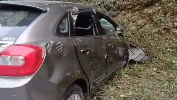 ब्रेक फेल होने से पहाड़ी से टकराई कार पति-पत्नी घायल