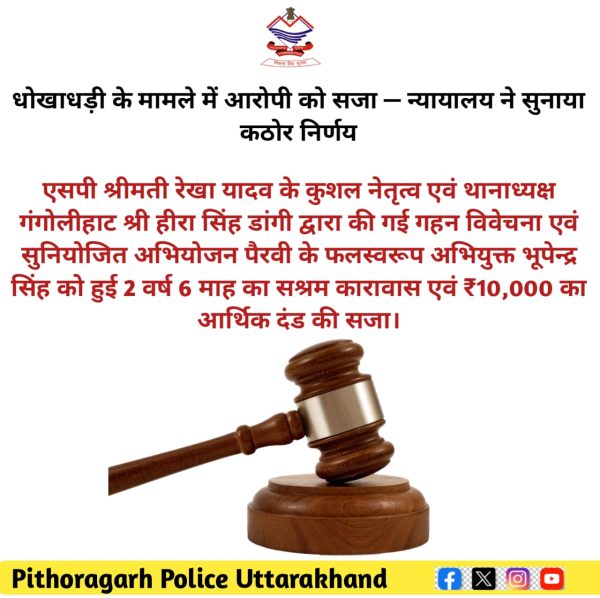 ByManoj ChandJune 27, 2025पिथौरागढ़ : एसपी रेखा यादव* के कुशल नेतृत्व एवं थानाध्यक्ष गंगोलीहाट हीरा सिंह डांगी* द्वारा की गई गहन विवेचना एवं अभियोजन अधिकारी शोभित...