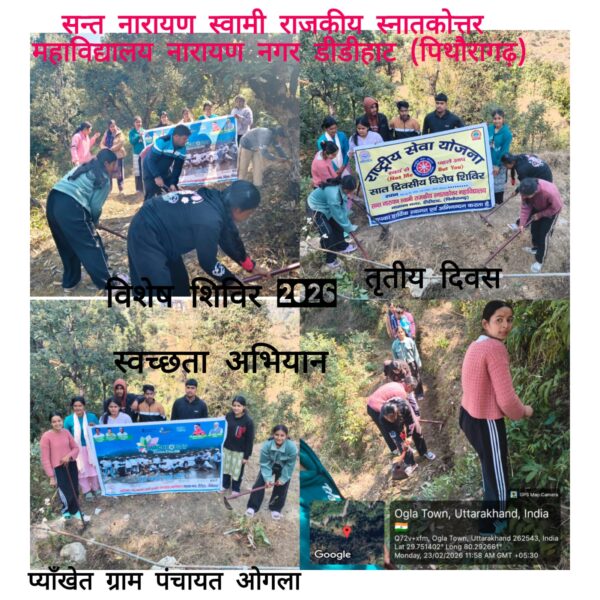 ByManoj ChandFebruary 24, 2026पिथौरागढ़ – संत नारायण स्वामी राजकीय स्नातकोत्तर महाविद्यालय नारायण नगर के *राष्ट्रीय सेवा योजना (NSS)* के अंतर्गत ग्राम पंचायत ओगला, डीडीहाट (पिथौरागढ़) में...