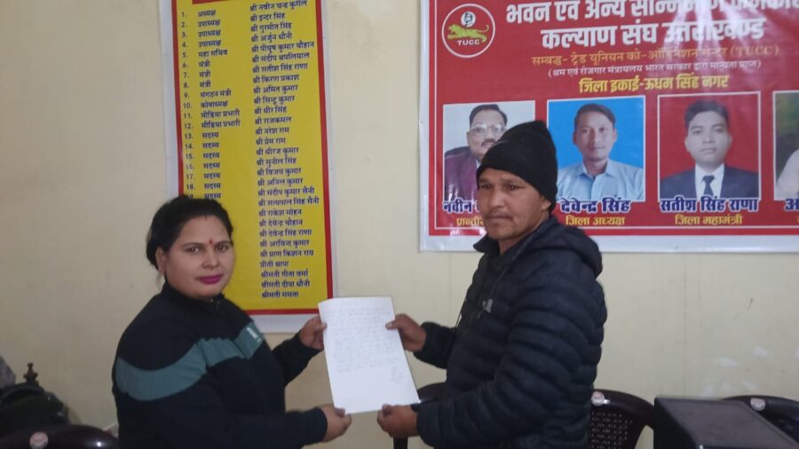 उत्तराखंड राज्य के जनपद उधम सिंह नगर में भवन एवं अन्य सनिर्माण कर्मकार कल्याण संघ के विकास खंड एवं तहसील की कार्यकारिणी व ब्लॉक के तमाम पधाधिकारी नियुक्त किये गए